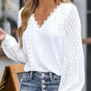Women's V-Neck Lace Trim Blouse & Long Sleeves